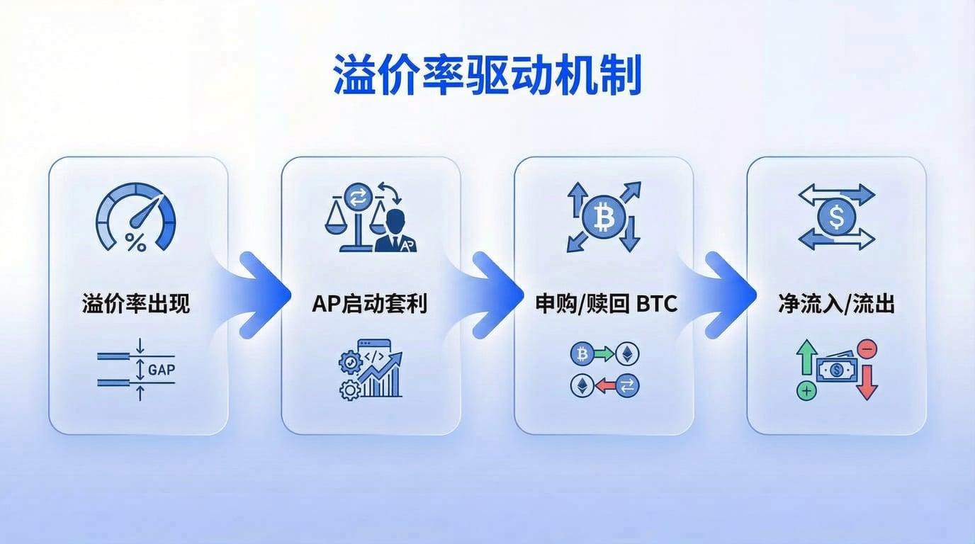 溢价率正负与 ETF 流入流出的关系