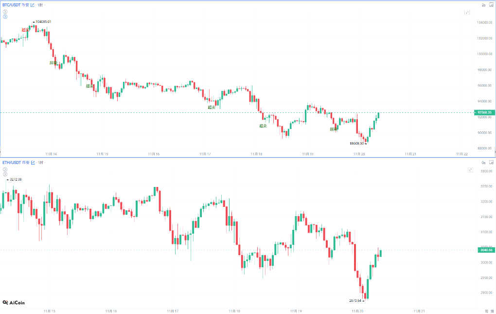 ● 在英伟达财报发布前,加密市场刚刚经历了一场“血洗”:比特币短线跌破9万美元,以太坊跌破2900美元整数位。