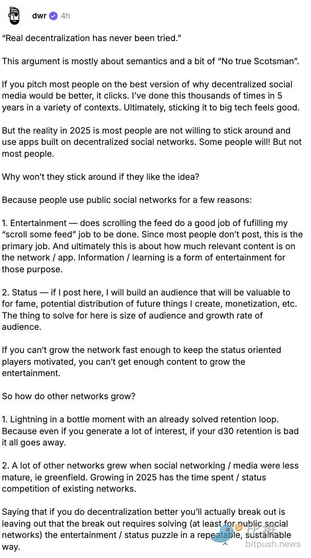 这并不是对 Farcaster 的直接批评,而是揭示了一个更底层的问题: