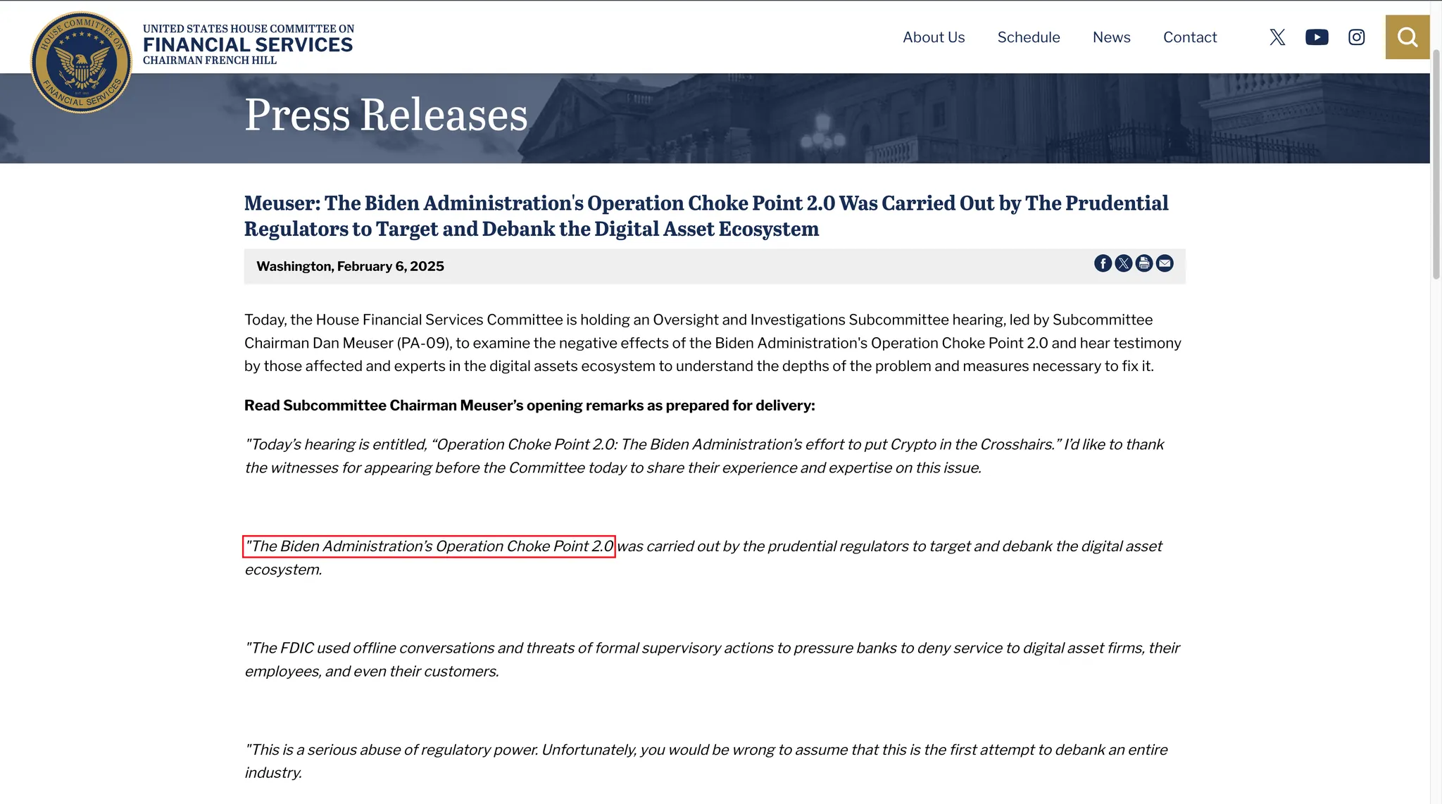 这一阶段被行业内部称为“去银行化”,也被部分议员形容为“Operation Choke Point 2.0”。根据众议院金融服务委员会后续调查,多家银行在非正式监管压力下,切断了与加密企业的合作。Silvergate Bank 与 Signature Bank 的相继退出,是这一趋势的集中体现。